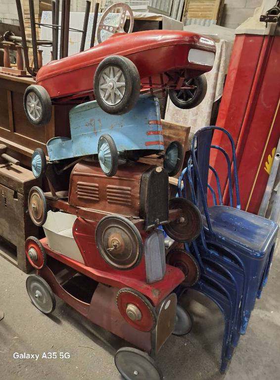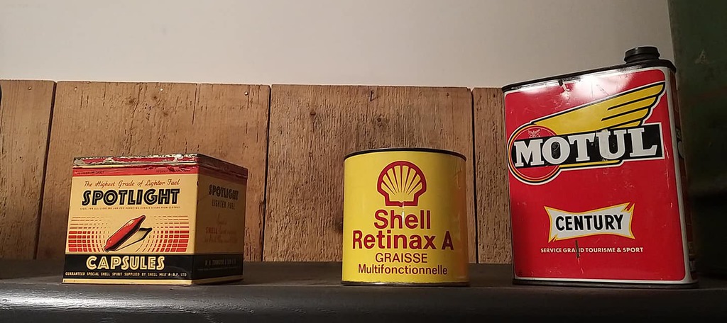 Sur cette page vous trouverez essentiellement des objets de garage tels que motos anciennes, voitures à pédales, pompes à essence, bidons d'huile, burettes, calandre de voiture etc ...